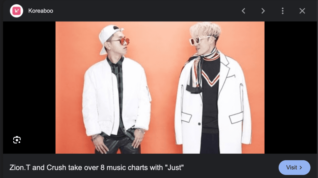 It’s a cute pic of them together. Then I noticed that “Just” charted on 8 different music charts, but the source for that is Koreaboo, who’s another nope for me.